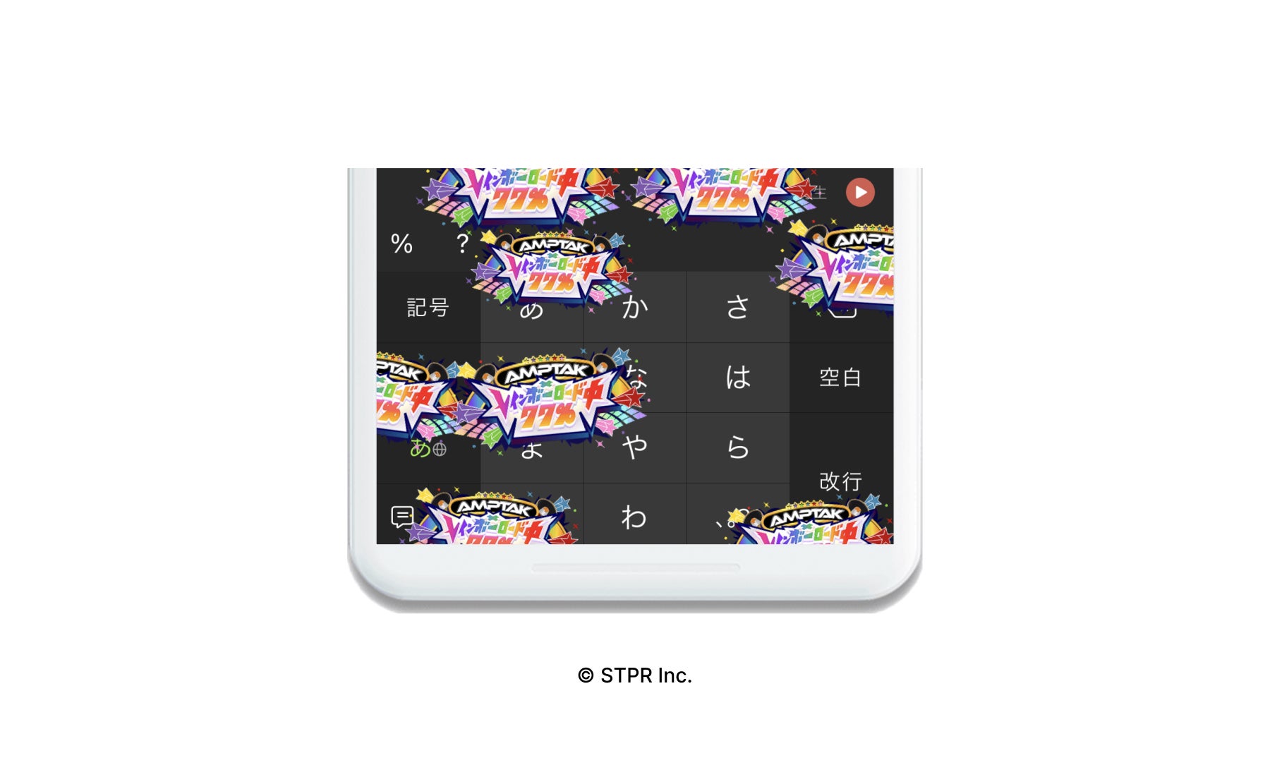 ユーザーが文字を入力し、変換候補より特定のキーワードを選択することで画像や動画がキーボード上で再生される機能です。本コラボでは、「アンプタックラブ」「レインボーロード」などのキーワードや、メンバー名を入力することで特別な演出が再生されます。