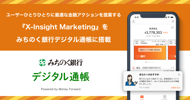 「Money Forward X」、『みちのく銀行 デジタル通帳』に分析基盤の搭載を開始