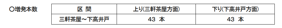 臨時ダイヤの詳細は下記のとおりです。