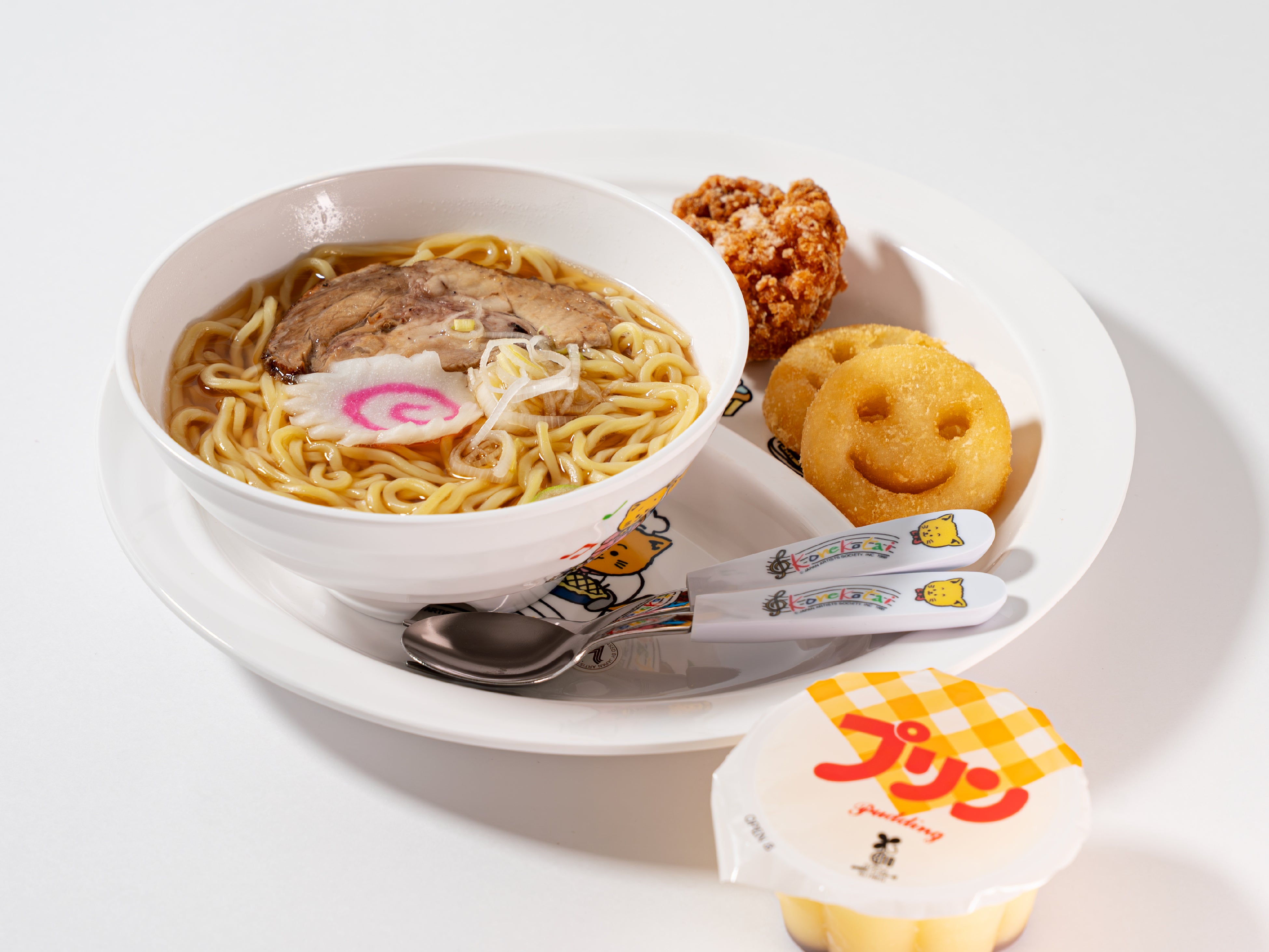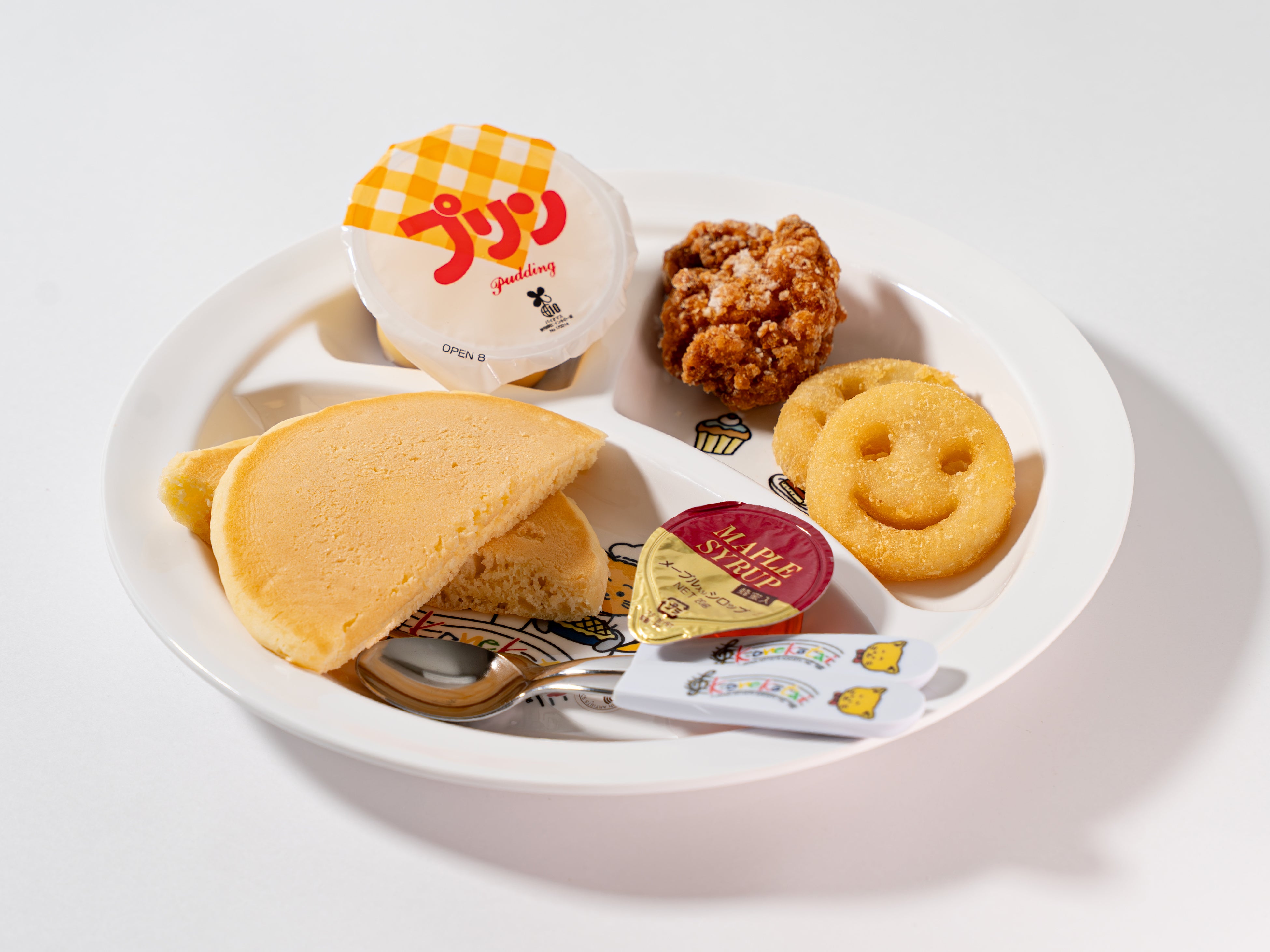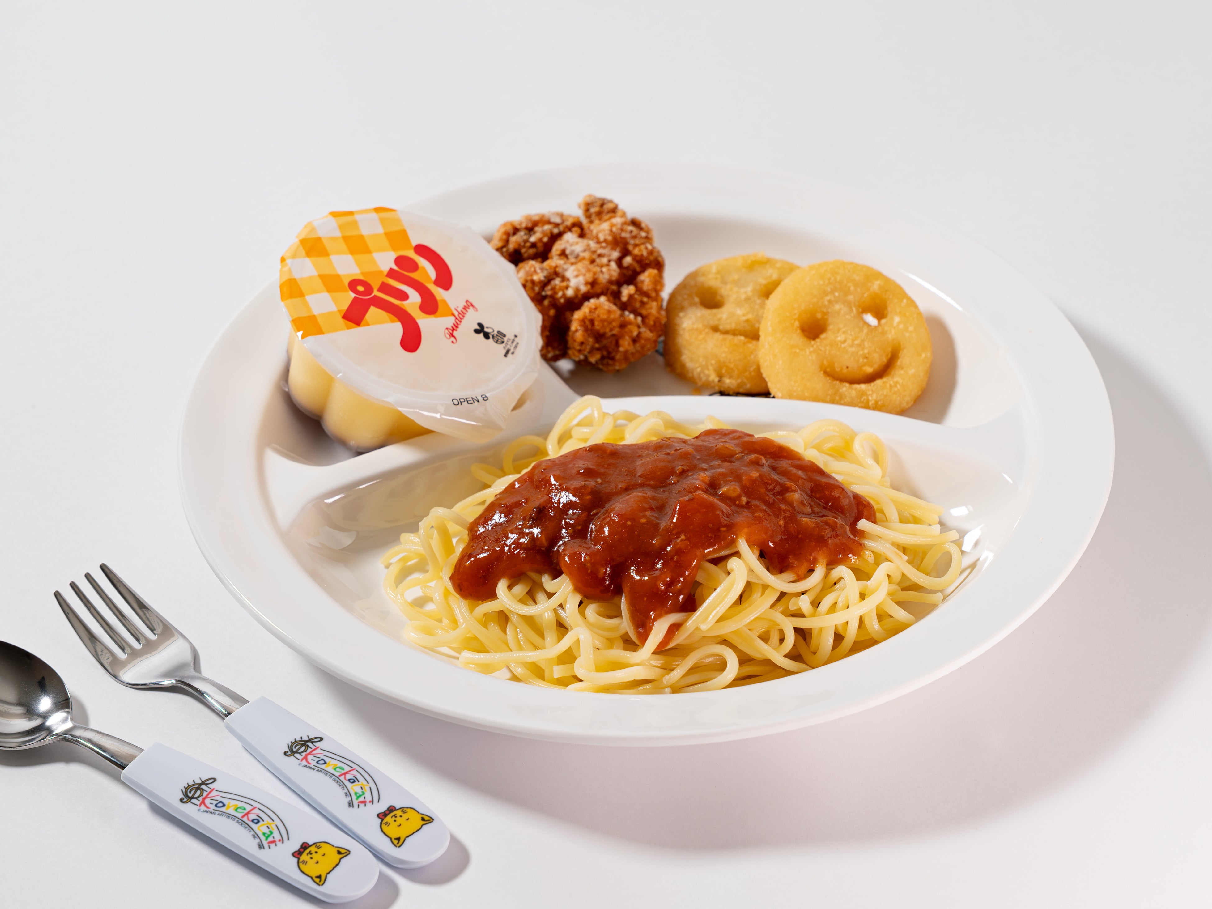 メインが異なる3つのメニューにはそれぞれ「唐揚げ」、「ポテト」、「プリン」が一緒に添えられており、楽しく美味しくお楽しみいただけるメニューです。