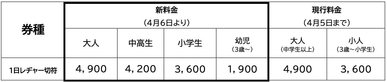 ■西武園ゆうえんちではチケット料金を変更し、今まで以上に気軽にお越しいただけるよう2026年 4月6日(月)より以下のように改定させていただきます。