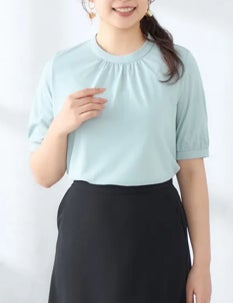 キンセキカット®Tシャツは、七分袖クルーネックTシャツ、五分袖ボートネックTシャツに加え、胸元のギャザーがアクセントの半袖スタンドギャザーTシャツとスーツのインナーとしてもご着用いただけるようなシンプルなデザインで、色柄も豊富にご用意いたしました。