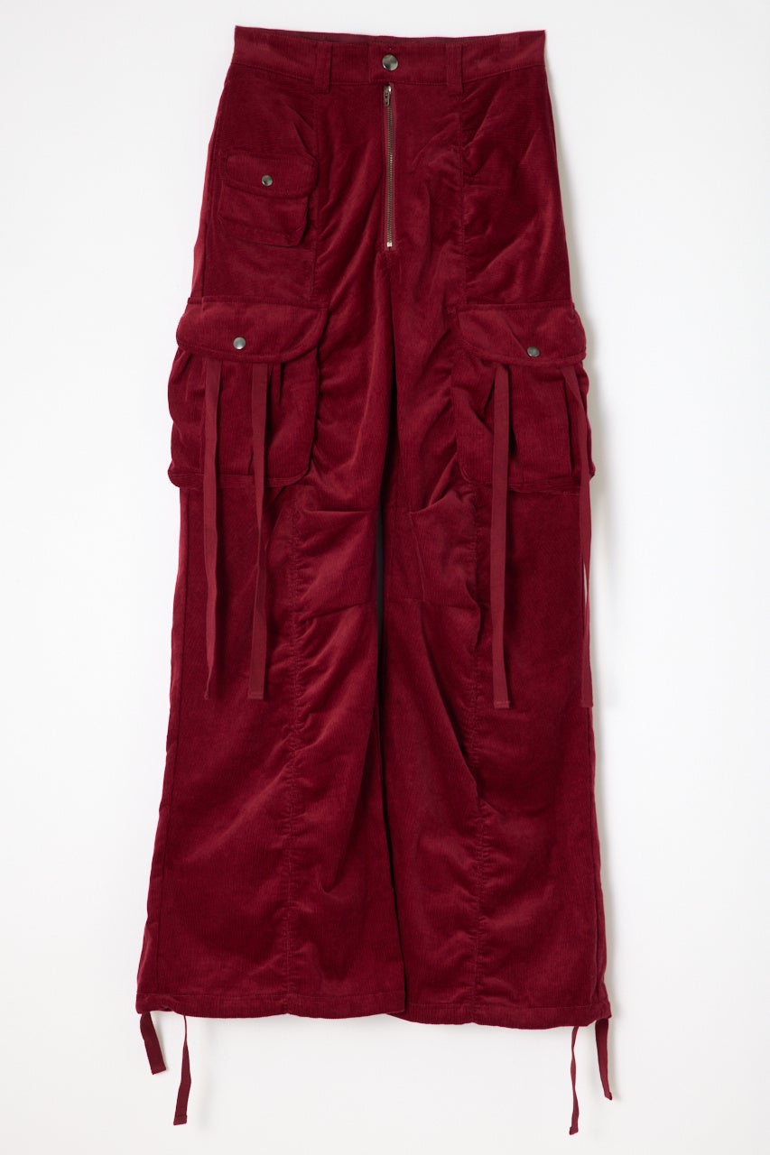 たっぷりと溜まるディティールでギャザーや立体のポケットが目を惹く一本。