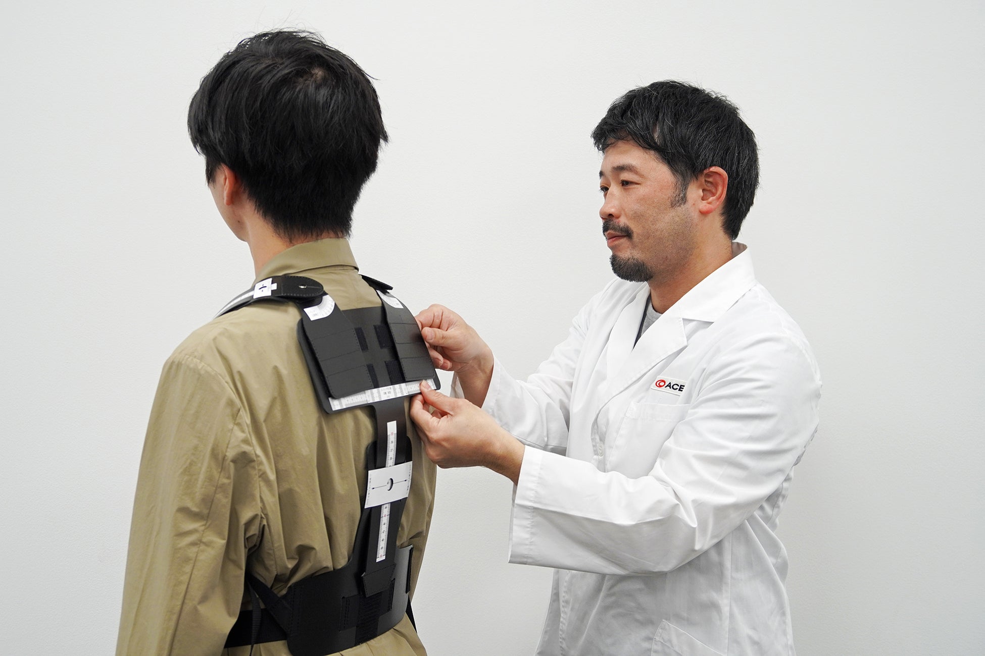 「4Uハーネス」は、体型・体格の異なるさまざまな男性モニターの計測データを基に開発した4タイプのショルダーハーネス。