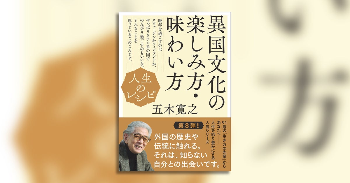 NHK「ラジオ深夜便」の語りから選り抜いたエピソードから、人生を彩り豊かなものにするためのヒントを得る――。累計15万部を超えた作家・五木寛之さんによる「人生のレシピ」シリーズ。その最新刊となる『人生のレシピ 異国文化の楽しみ方・味わい方』が4月10日に発売されます。