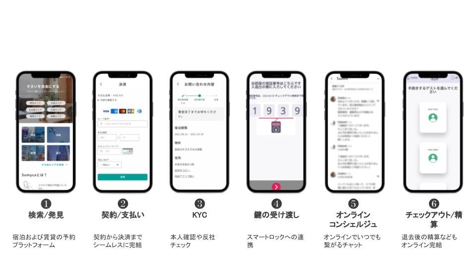 matsuri technologiesが独自開発した5つのSaaSを活用することにより、チェックインからチェックアウトまでオンラインで完結し、効率的な不動産運用を可能にしています。