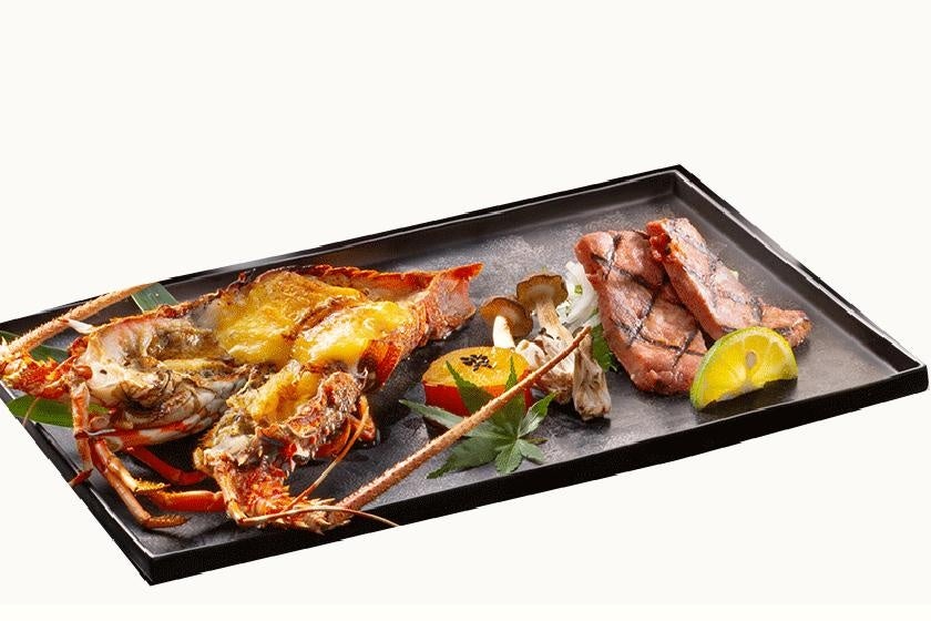 ・焼物 伊勢海老(姿)と牛炙り焼き
