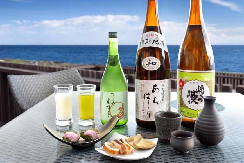 お休み前のデザートタイムには、ぜんざいと桜甘酒を。また館内の昭和レトロな甘酒横丁では、お子さまに「さくら綿あめ」を。お部屋から「ムーンロード」や朝日を望む絶景のお祝いの宿で、家族や友人と先取り春旅を満喫してください。