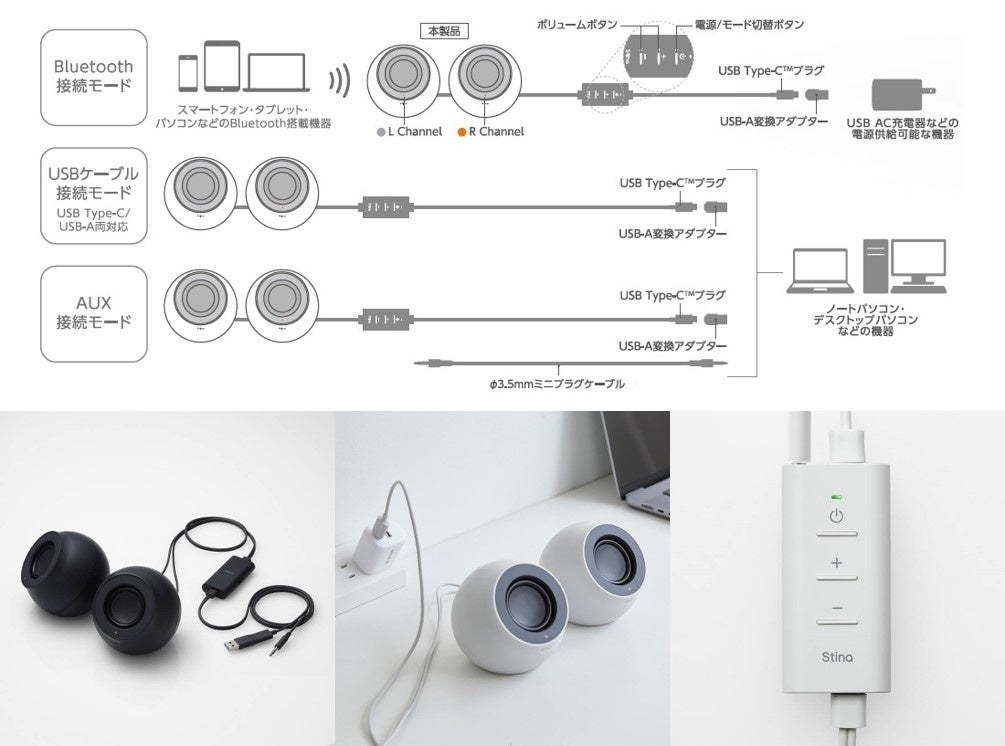 暮らしに馴染む、ミニマルデザイン!USB電源対応の卓上スピーカー“Stina(スティーナ)”、接続方法で選べる3タイプを新発売