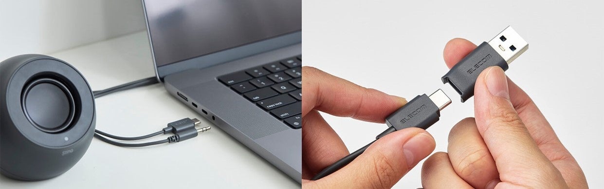 給電も音声入力もケーブル1本でOK。パソコンのUSB Type-C(USB-C)ポートに挿すだけですぐに使うことができ、ステレオサウンドを手軽に楽しめます。