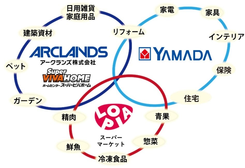 株式会社ヤマダホールディングス(本社:群馬県高崎市、代表取締役会長 兼 CEO:山田 昇、以下、ヤマダホールディングス)は、ホームセンターを運営するアークランズ株式会社(本社:新潟県三条市、代表取締役:坂本 晴彦、以下、アークランズ)および食品スーパーマーケットを運営する株式会社ロピア(本社:神奈川県川崎市、代表取締役:髙木 勇輔)とのコラボレーションによる共同開発店舗 「アークスクエア茨木」を2025年5月21日(水)から順次オープンいたします。