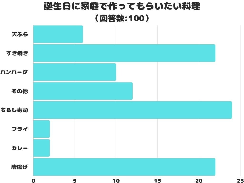 誕生日に家庭で作ってもらいたい料理をアンケートにて調査したところ、1位は「ちらし寿司」でした。