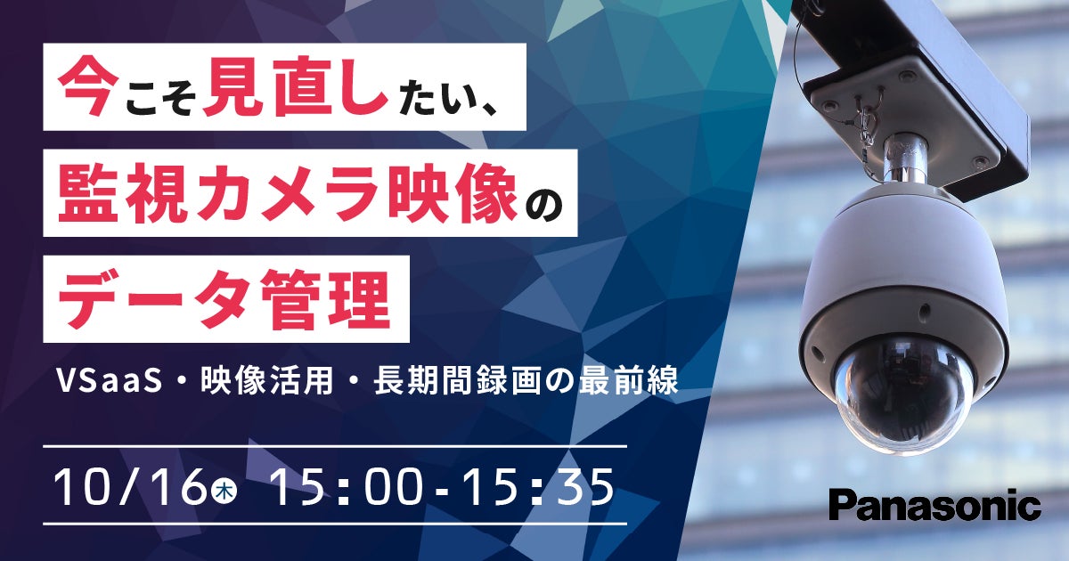 パナソニック インフォメーションシステムズ株式会社は、2025年10月16日(木)『今こそ見直したい、監視カメラ映像のデータ管理 VSaaS・映像活用・長期間録画の最前線』セミナーを開催します。
