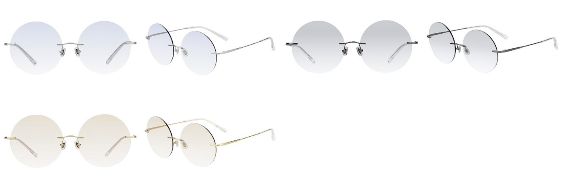 種類、価格 |メガネ(UV100%カットクリアレンズ)3型各3サイズ各6色 全54種 ¥9,900、サングラス(UV100%カット) 1型3色 ¥9,900 ※すべてのアイウェアにオリジナルケースとメガネ拭き付き、チャーム ¥550~、グラスコード ¥3,300~