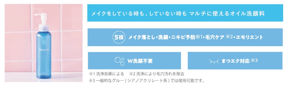 第1弾のラインアップは、肌ケアに重要な「落とすケア」アイテム。濃いアイメイクも凸凹パッドでやさしくするんと落とせる「ポイントメイクリムーバーパッド」、角栓除去効果とベースメイク落ちを両立しトリートメントのような洗い心地の洗顔料「クレンズ&ウォッシュトリートメントオイル」、寝ている間の皮脂汚れや古い角質をやさしくオフする洗い流し不要のふきとり朝洗顔「クリアワイプ&ウォッシュトナーパッド」の3アイテム。