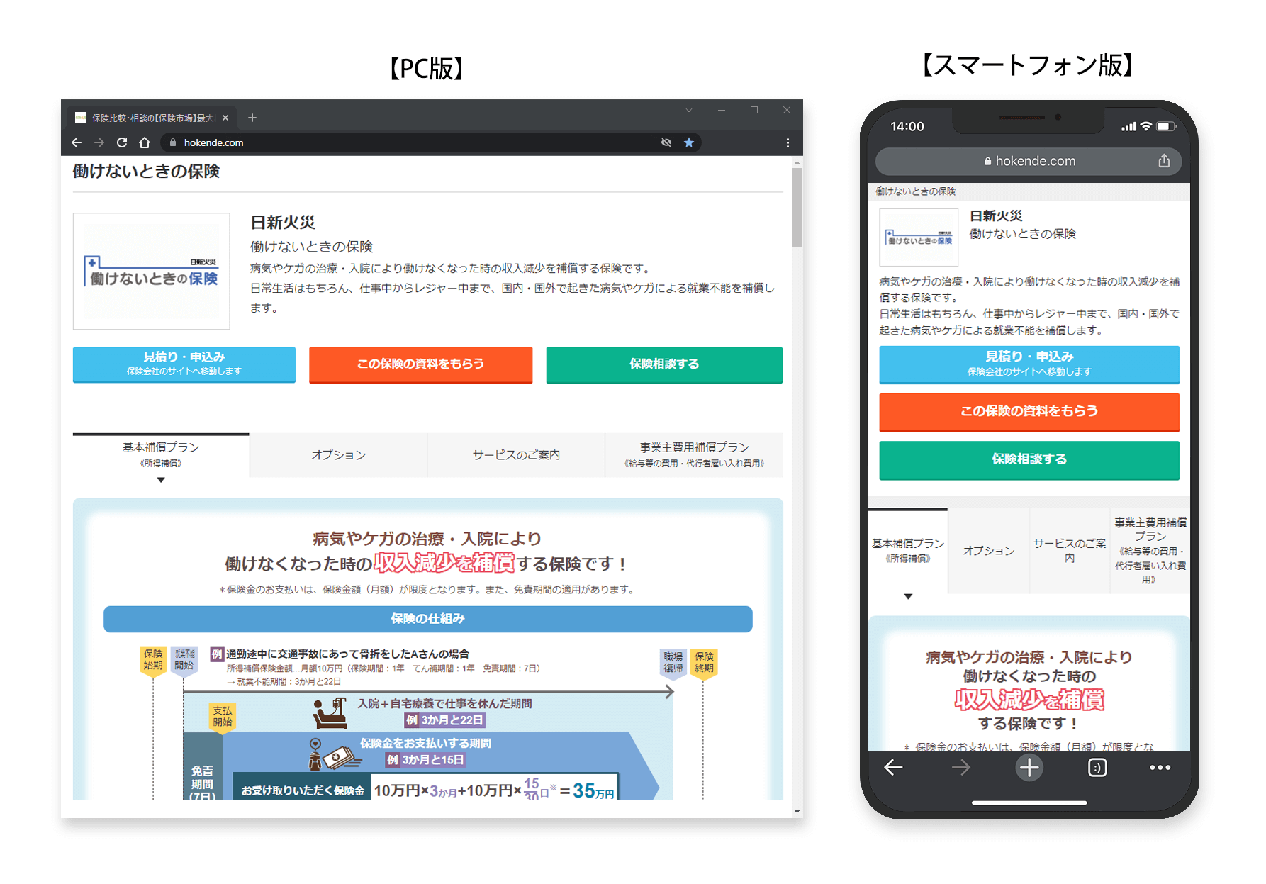 保険選びサイト「保険市場」に掲載を開始した日新火災の『働けないときの保険』は、対面販売・インターネットでお申し込みいただける保険商品です。「保険市場」PCサイトおよびスマートフォンサイトにて、商品の詳細をご確認いただけます。