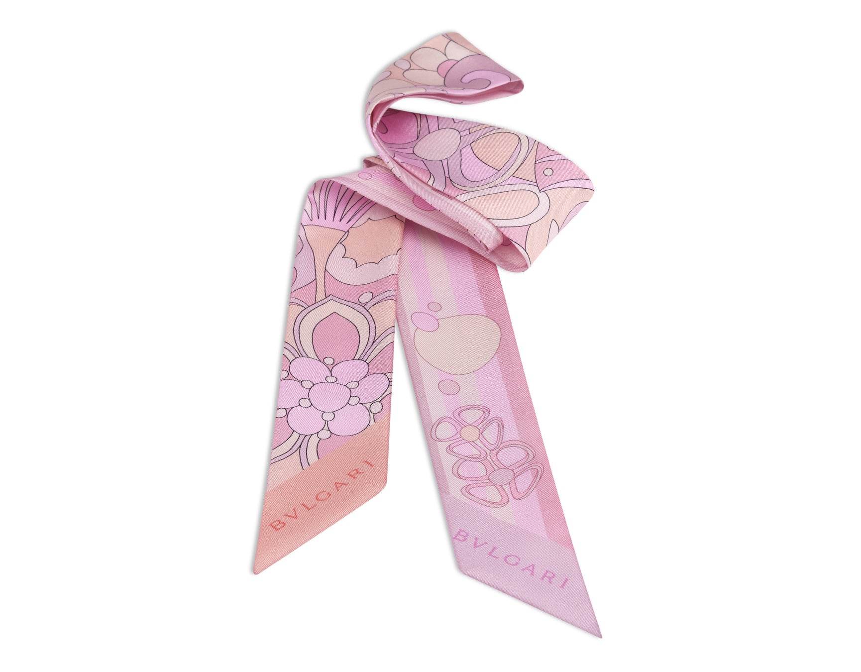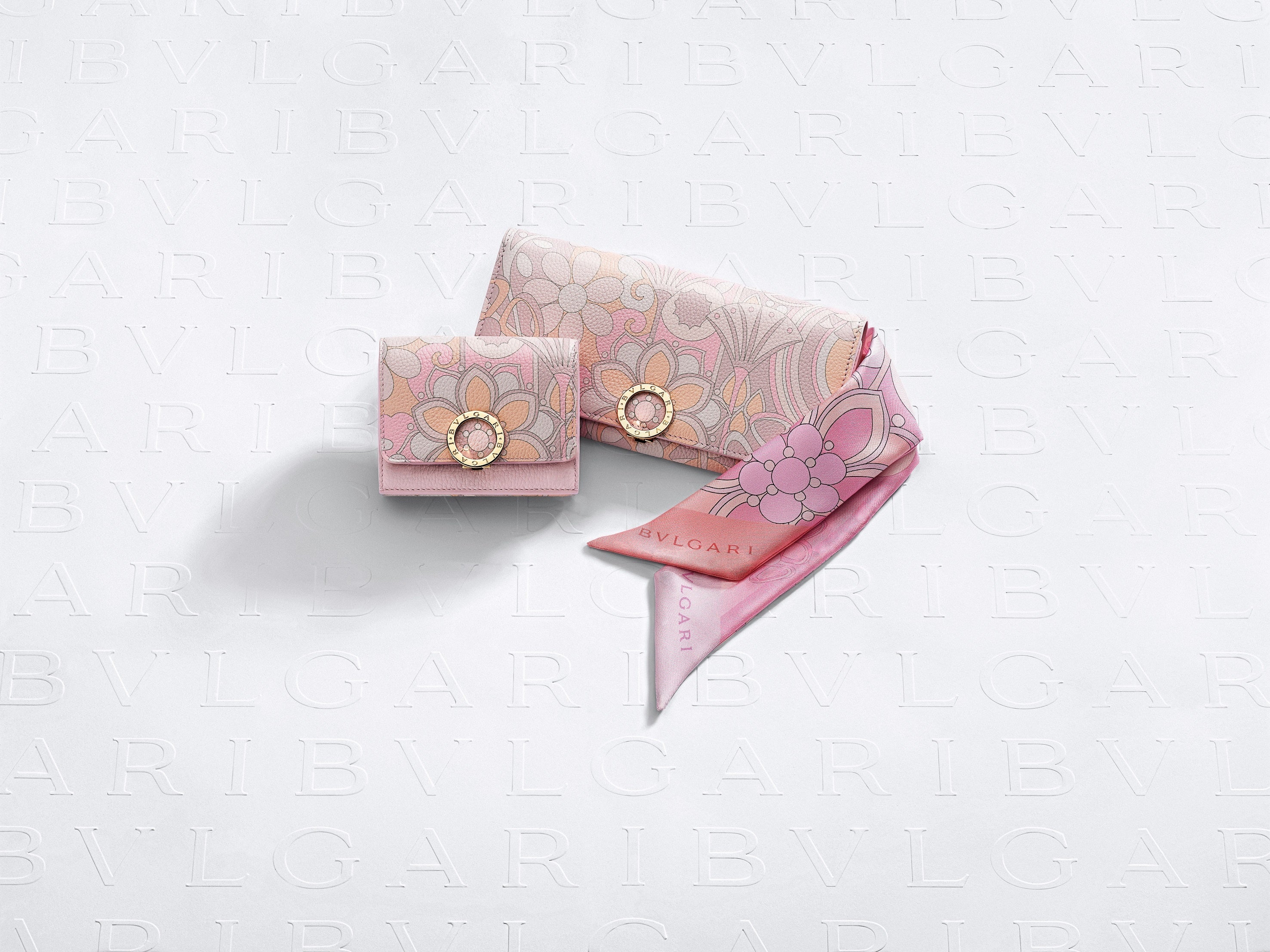 本コレクションの最後を飾るのは、全体に余すところなくプリマヴェーラのプリントモチーフをあしらったグレインカーフレザー製のラージサイズとスモールサイズのウォレットです。特徴的な円状の「ブルガリ・ブルガリ」ロゴクリップ付きのクロージャーには、アイコニックなダブルロゴをあしらっています。シルク製の「シェリー」は、ヘッドバンドやソフトベルトとして、または首元に巻いたり、お気に入りのバッグを飾ったりと、さまざまなスタイリングをお楽しみいただけます。創造性と洗練されたタッチで歓喜に満ちた春を謳歌するのにふさわしい逸品となっています。