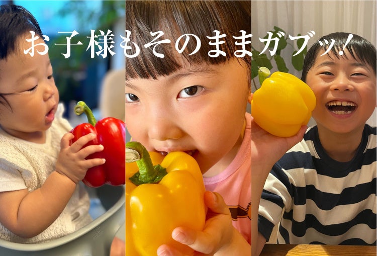 よりおいしく、より大きく育ったものの、サイズが大きすぎるため、規格外品となり市場には流通させづらい3万個のパプリカを、Oisixでは多くのご家庭で楽しんでいただくため、通常規格サイズのパプリカと同価格で販売いたします。非常に肉厚でジューシーなので、生のまま丸かじりするのがおすすめ。肉詰めにしてグリルしてもさらに甘さが際立って美味しく食べることができます。