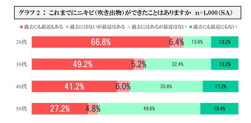 【調査レポ―ト】20代や30代だけじゃない!40代や50代でもニキビの悩みが・・・ 肌の悩みに関する調査で判明 年代を問わず発生していたコロナ禍でのニキビ