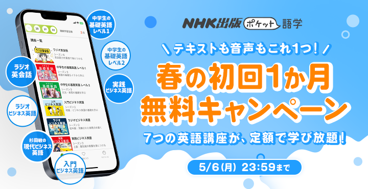 「ポケット語学」 NHK英語講座をアプリで! 春の1か月間無料体験キャンペーン