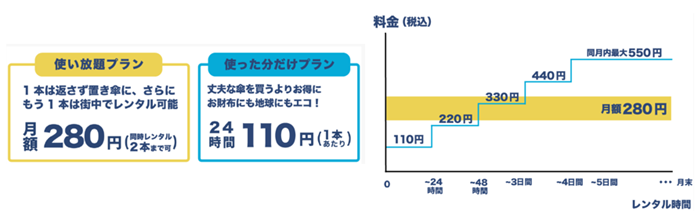 ※傘は借りたスポット以外でも返却可能です。