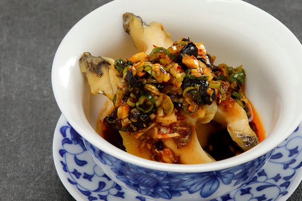 低温調理で柔らかく、コリっとした食感の鮑に豆豉と香味
