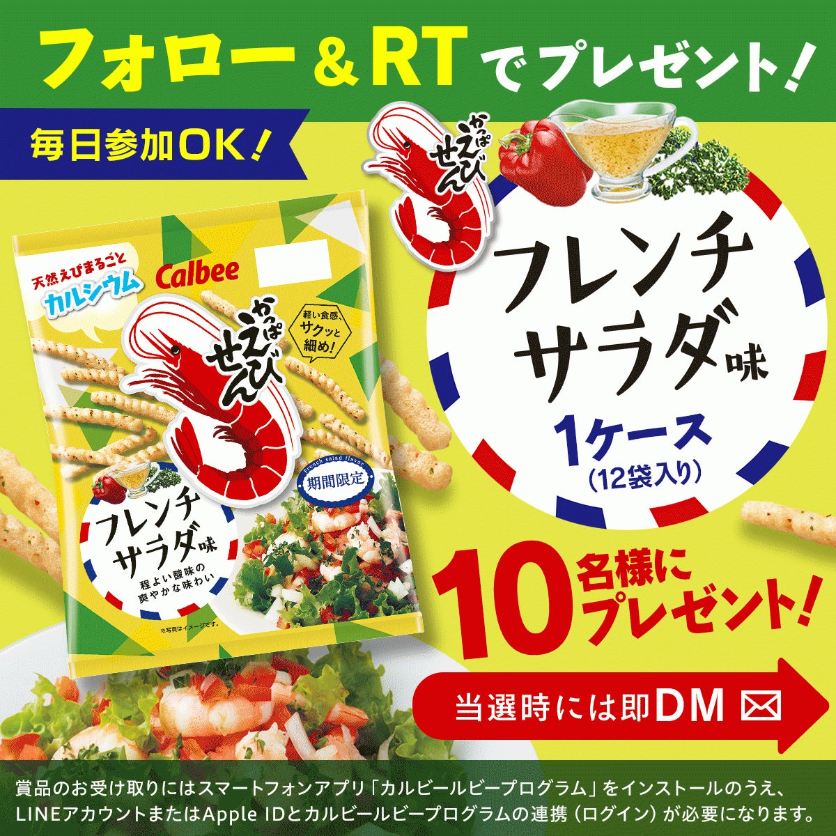 かっぱえびせん公式Twitterアカウント上で『かっぱえびせん フレンチサラダ味』が当たるプレゼントキャンペーンを実施