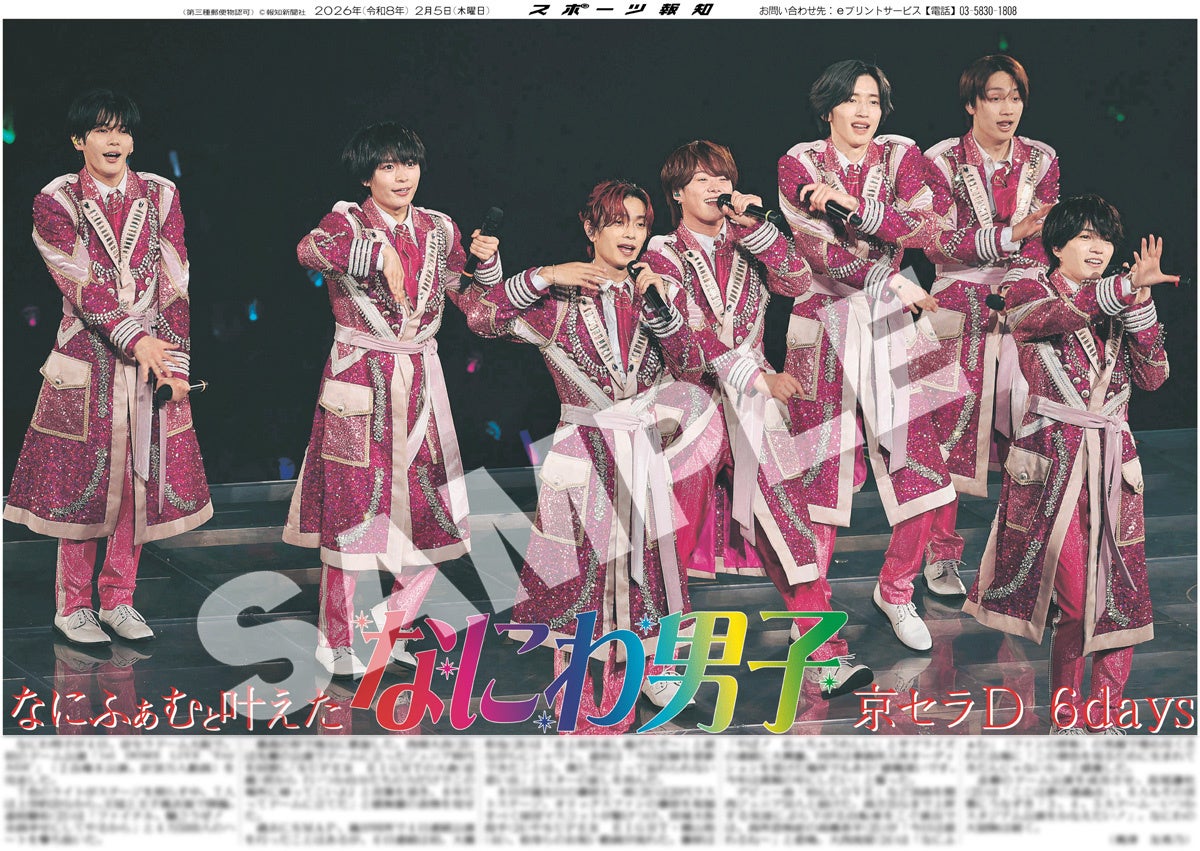 スポーツ報知を発行する報知新聞社(代表取締役社長・長谷川剛)は新聞の一部紙面をコンビニエンスストアのマルチコピー機からプリントできる「スポーツ報知コンビニプリント」サービスを展開中。スポーツ紙ならではの大きな写真を使った紙面をプリント版として販売しています。新たに2月5日付掲載、なにわ男子が京セラドーム大阪で、史上初となる6日間連続で同所公演を完走した様子を伝える紙面を発売。全員バージョンと個人バージョン合わせて全21種類になります。