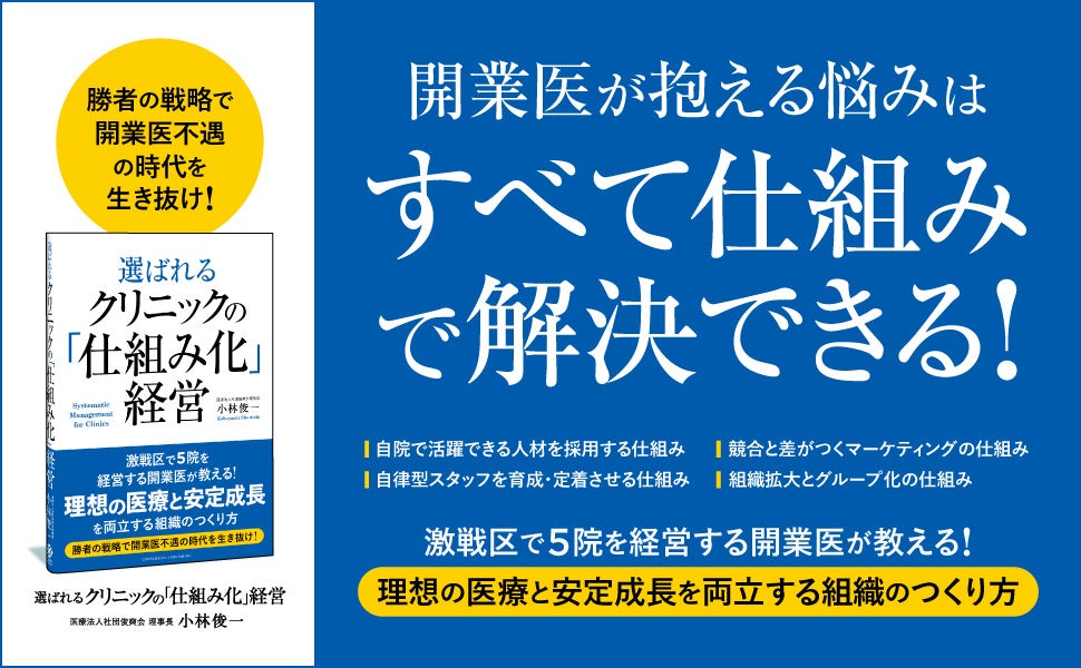 約4割のクリニックが赤字! 開業医不遇の時代を生き抜くための組織づくりを解説した書籍『選ばれるクリニックのための「仕組み化」経営』が本日発売!
