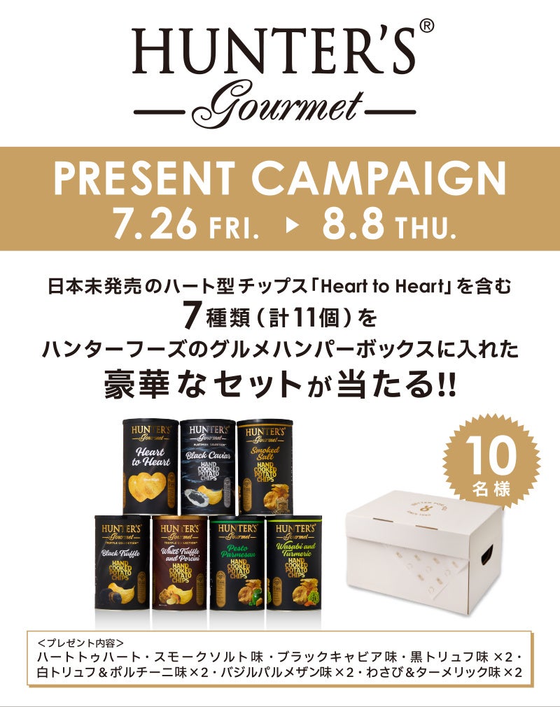 7月26日(金)~8月8日(木)の期間中、HUNTER ポテトチップス いずれかをご購入いただいた PLAZA PASS 本会員の方の中から抽選で、HUNTER ポテトチップスの超豪華セットをプレゼント。