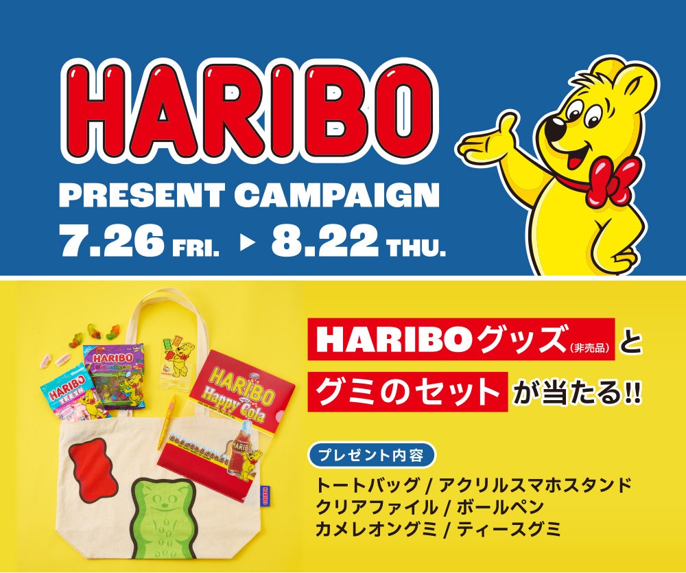 7月26日(金)~8月22日(木)の期間中、HARIBOグミやグッズの写真をInstagramに投稿してくださった方の中から抽選で、HARIBO新作グミ&グッズをプレゼント。
