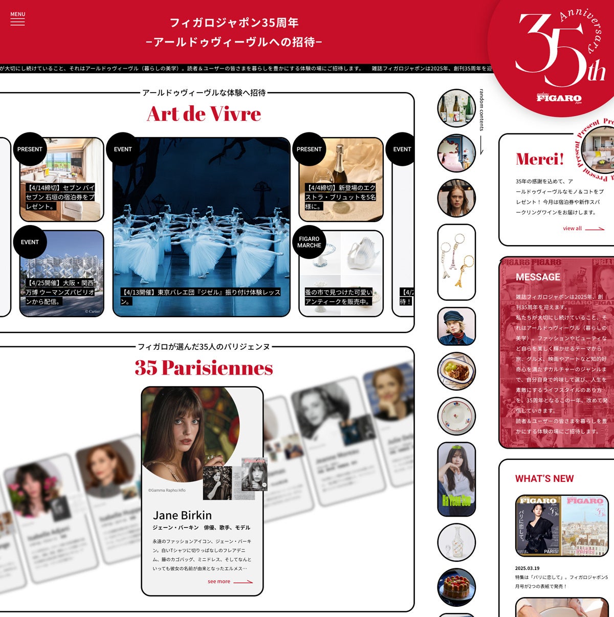 フィガロジャポン35周年特設サイト「−アールドゥヴィーヴルへの招待−」がグランドオープン!読者招待イベントやプレゼント、スペシャルコンテンツをお届けします。
