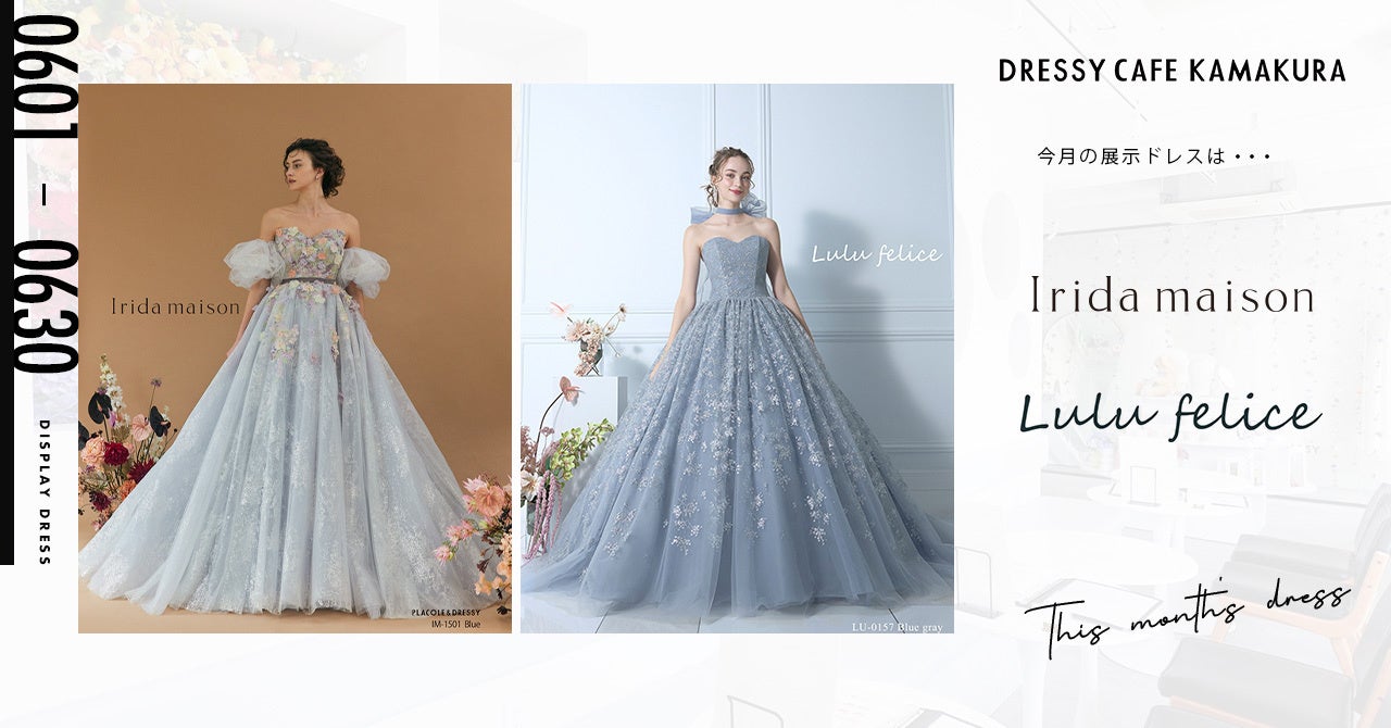 【DRESSY CAFE KAMAKURA】6月のディスプレイドレスはKURAUDIAより「Irida maison」「Lulu felice」のウェディングドレスを期間限定でお届けいたします。