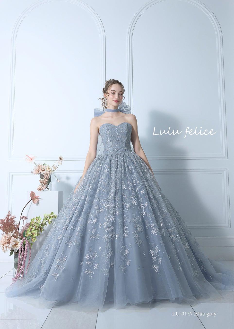 【Lulu felice(ルルフェリーチェ)】繊細なカラーリングから成す透明感。一粒から拘ったグリッターの輝きはLuluFeliceのエッセンス。纏った瞬間に心ときめく憧れの花嫁姿を叶えます。スタイリングにもトレンドを取りいれ今の時代を生きるあなたへフィットするドレスコレクション。