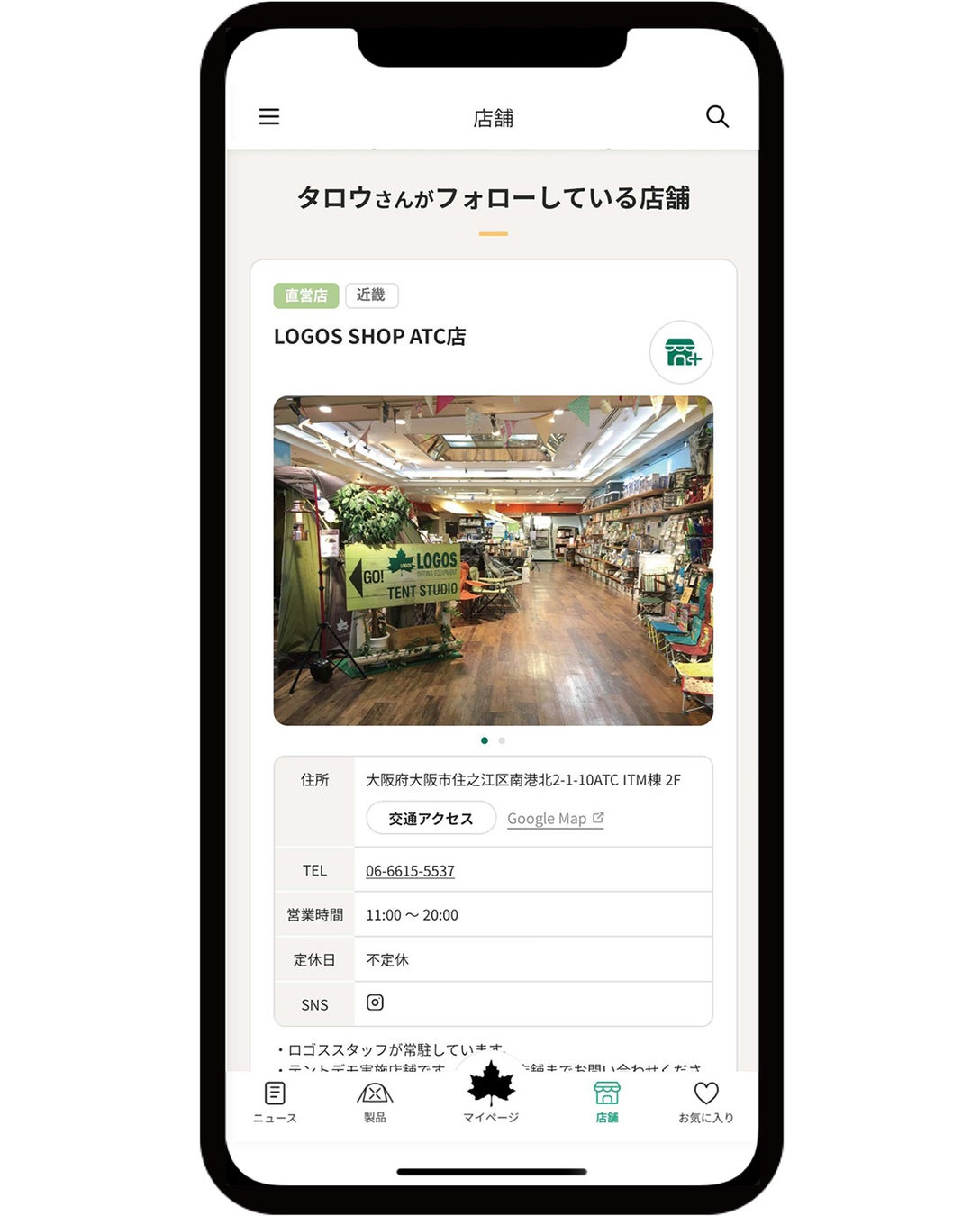 位置情報を利用し、お近くのロゴスショップをスムーズに検索できます。また、フォロー店舗を登録いただくことで、アプリからフォローされた店舗の様々な情報を受け取れます。