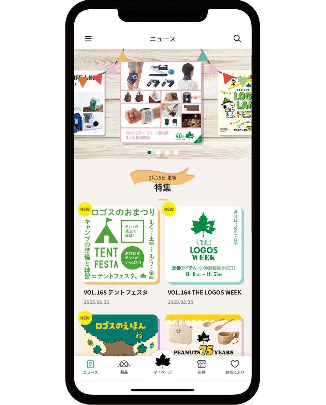 お得なキャンペーンや、ロゴスが展開する様々な最新コンテンツ、厳選した製品のカタログや、アウトドアを楽しむアイディアが詰まったオリジナルマガジンの閲覧など、ロゴスともっとつながる最新情報をお届けします。
