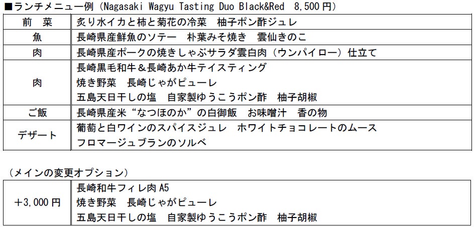 今回の長崎和牛フェアでは、長崎和牛の美味しさを改めて認識する取り組みとして、長崎県が誇る「黒牛」と「あか牛」との食べ比べメニューをご用意いたしました。是非この機会に、それぞれの銘柄和牛が持つ旨味を存分にご堪能くださいませ。