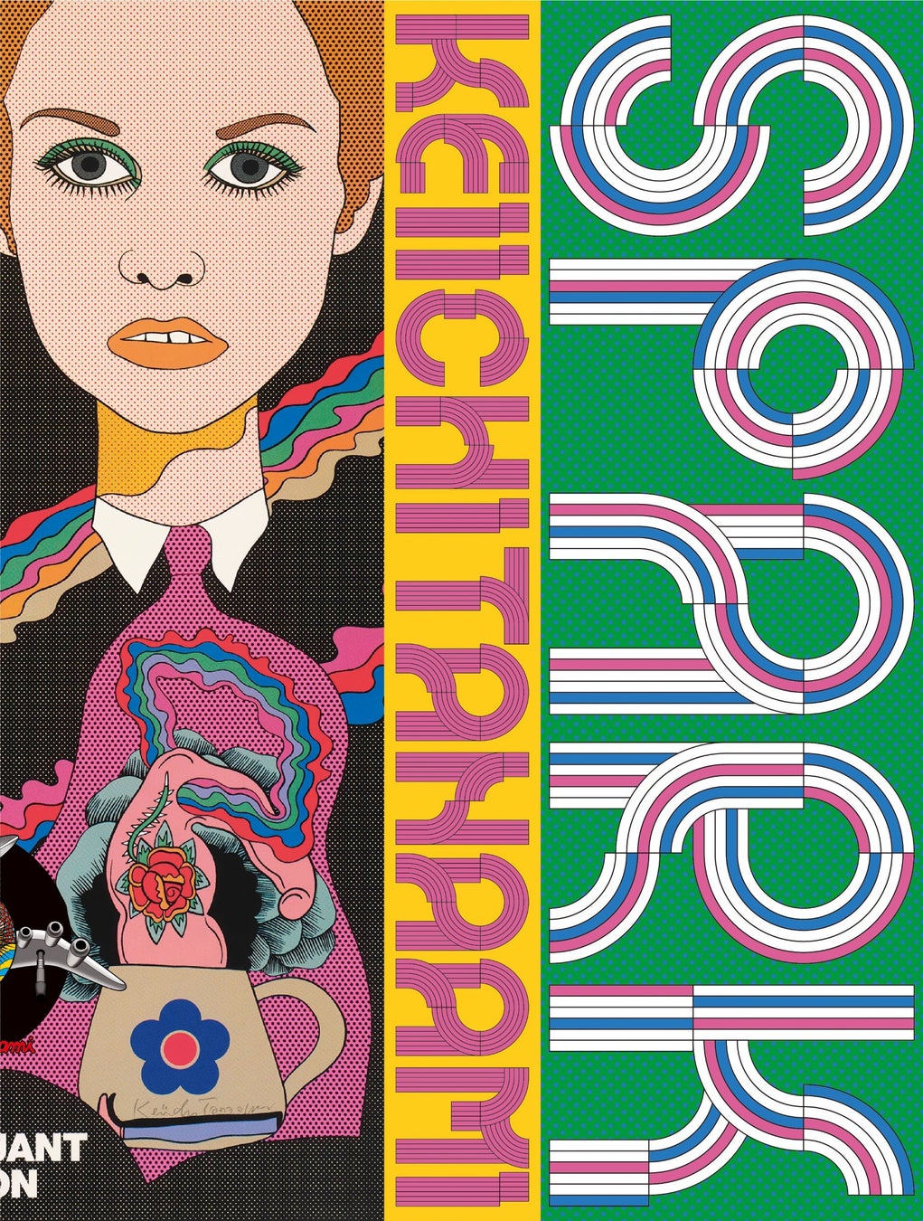 ポスター、レコードジャケット、版画など、田名網によるプリンティングを年代順にまとめた『SPARK』は、田名網がいかにして印刷技術に重きを置きながら創造性を追求してきたのかを明らかにしています。