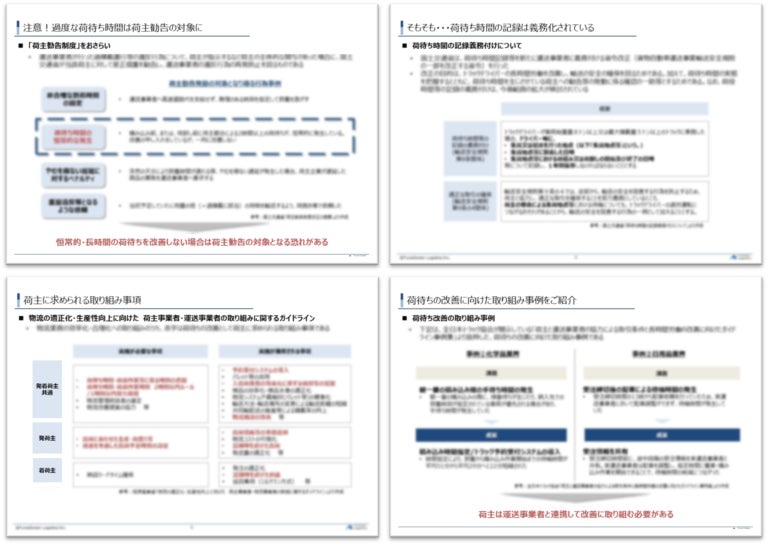 日本最大級の物流コンサルティングファーム 船井総研ロジ株式会社(本社:大阪市中央区、代表:橋本直行、以下「船井総研ロジ」)は、荷主勧告発動の対象となるNG行為の事例、荷待ち時間の記録義務化で抑えるべきポイント、荷主に求められる取り組み事項をわかりやすく解説した最新資料「荷待ち・荷役時間短縮に向けた荷主企業の具体的な方策」を公開しました。