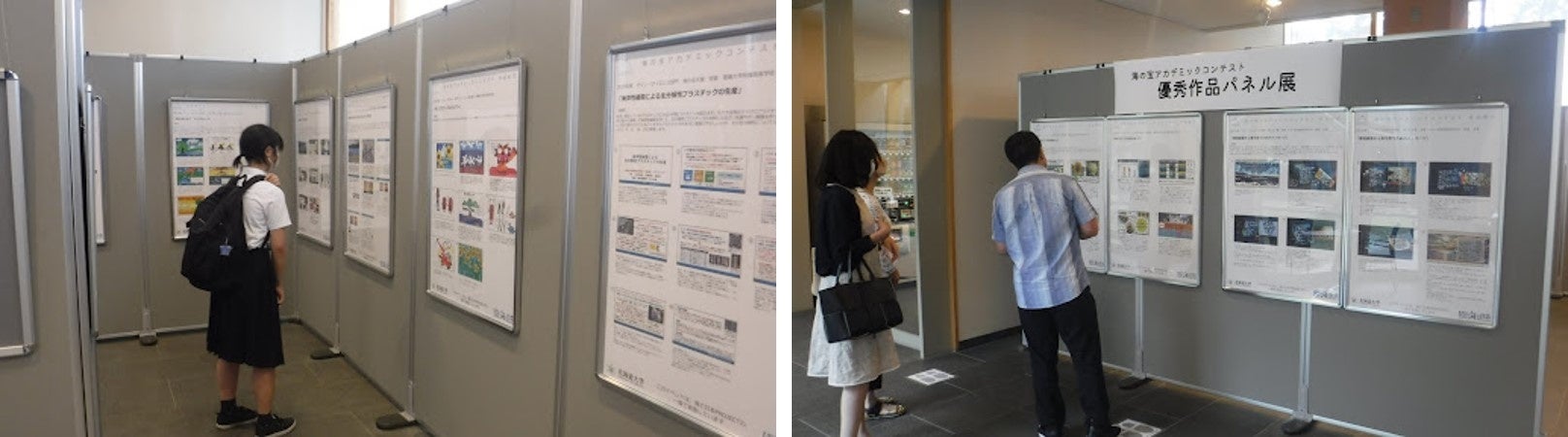 「海の宝アカデミックコンテスト」のこれまでの入賞作品から、海洋プラスチック汚染などの環境問題をテーマとした作品や、「ウニ」「牡蠣」を題材に制作されたものなど、数々の作品を展示しました。