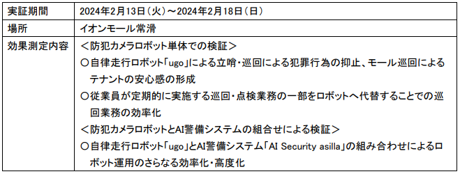 防犯カメラロボットおよびAI警備システムを活用した警備・巡回業務DXの実現に向けた実証実験をイオンモール常滑で開始