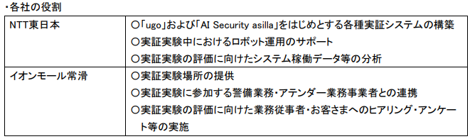 こうした背景を踏まえ、NTT東日本はイオンモール常滑にて犯罪行為の抑止効果や専門店従業員・お客さまへの安心感の向上と、警備・巡回の効率化・省人化の実現をめざし、ロボットを活用した高度な警備・巡回ソリューションの構築にむけた実証実験を2024年2月13日(火)より行います。