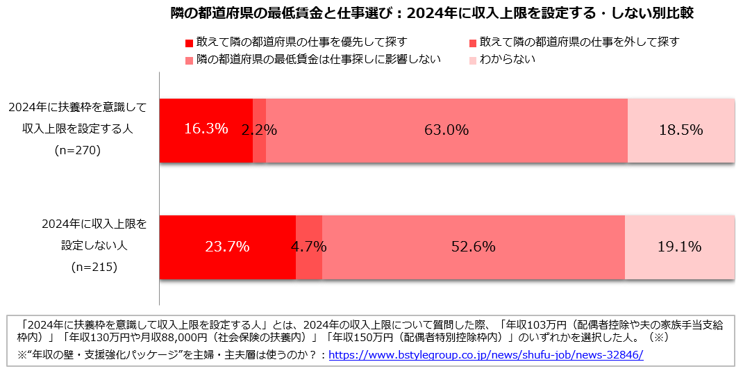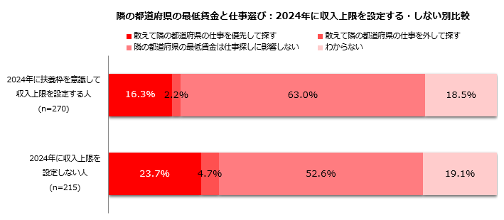 1.隣の都道府県の最低賃金の方が高い場合「隣県の仕事を優先する」18.9% 2.2024年に収入上限を設定する・しない別比較 3.子どもの数別比較 4.フリーコメントより |