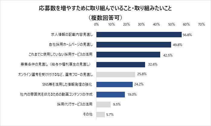 (2)応募数を増やすための取り組みは「求人情報の記載内容見直し」が最多