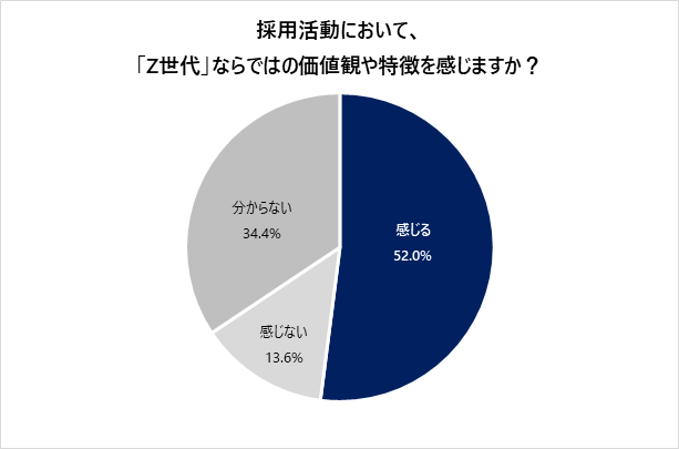 採用活動で「Z世代」ならではの価値観や特徴を感じると回答した企業が半数を超える。「社会課題への関心が高い」「事業への共感を重視」「自身のキャリアビジョンが明確」の声/人事担当者アンケート
