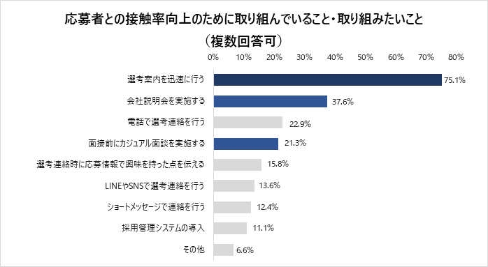 (3) 応募者との接触率向上のための取り組みは「選考案内を迅速に行う」が最多