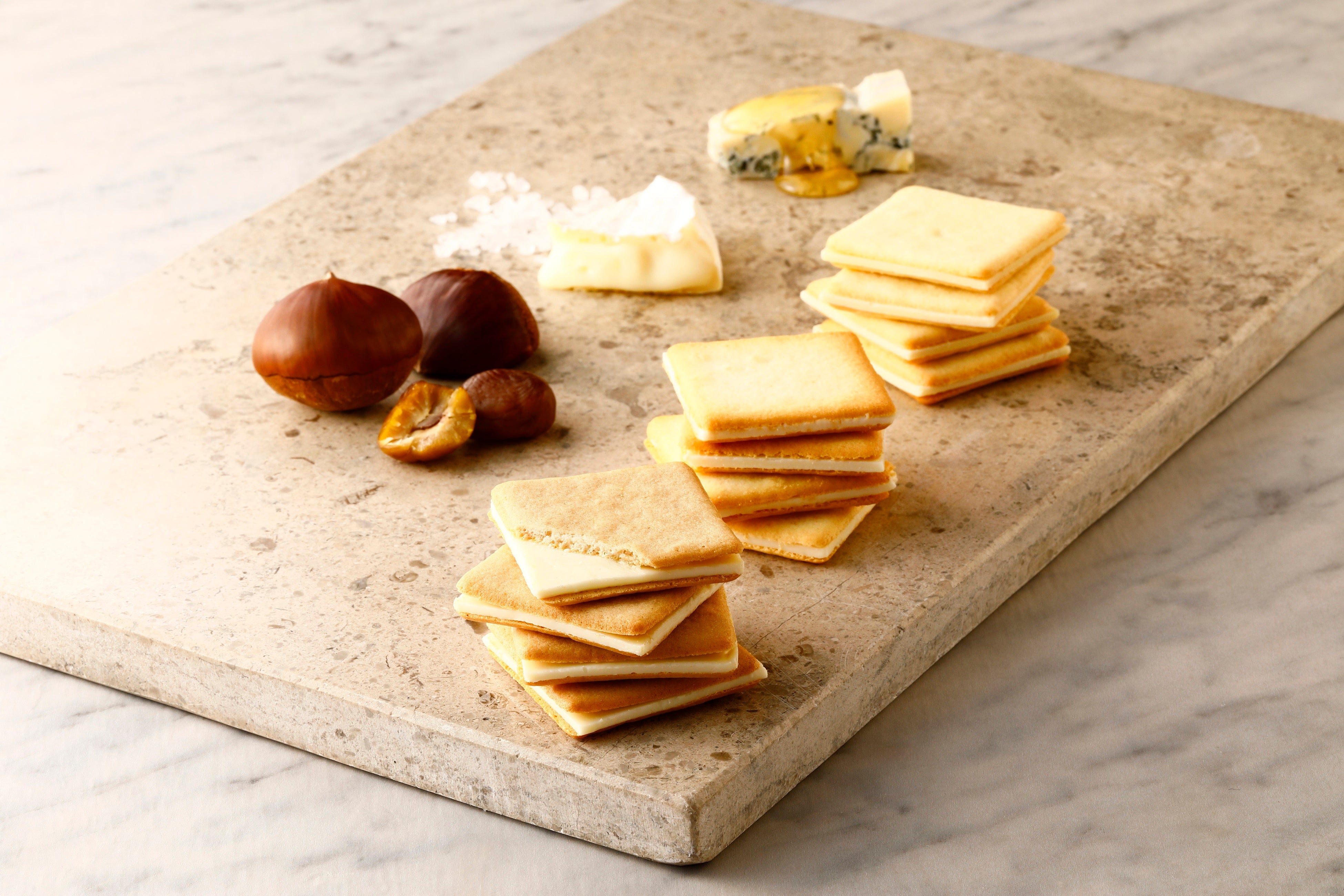 北海道産牛乳とフランス産ゲランドの塩を使った生地に、カマンベールチーズのチョコプレートをサンドしたクッキーです。