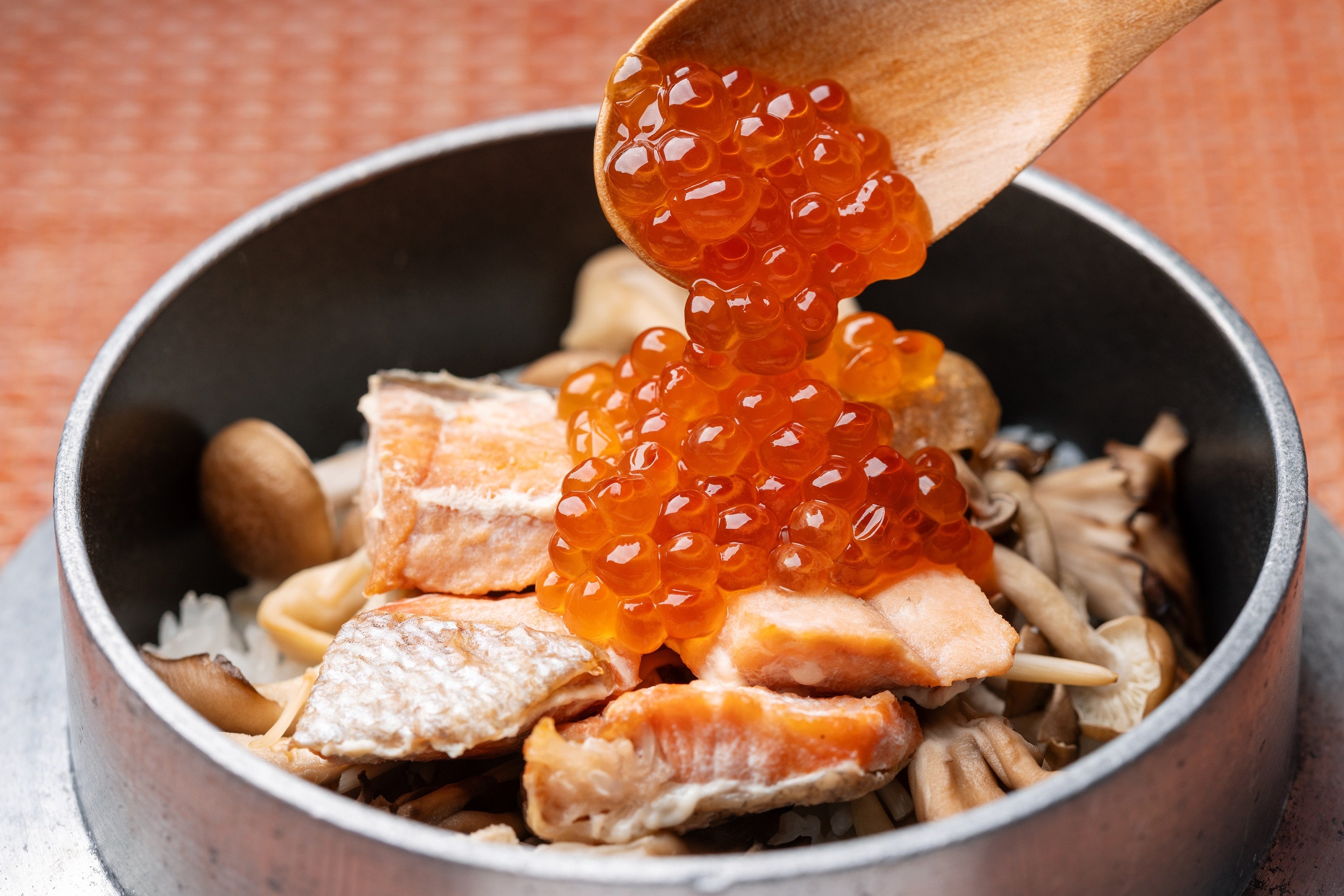 ご飯は釜めしでご用意しております(時期により内容は変わります)
