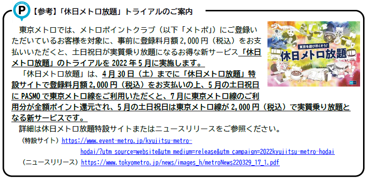 東京メトロお客様センター TEL 0120-104-106(年中無休9:00~17:00)