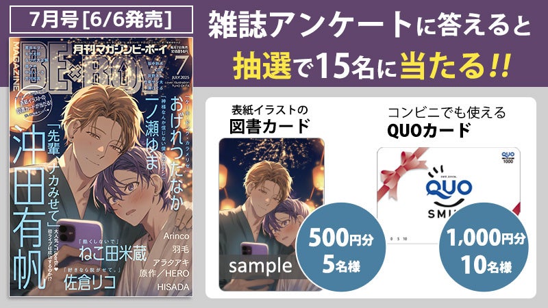 株式会社リブレ(本社:東京都新宿区、代表取締役社長:是枝由美子)は、沖田有帆先生が表紙の雑誌「マガジンビーボーイ2025年7月号」を6月6日に発売いたします。https://www.b-boy.jp/magazine/226290